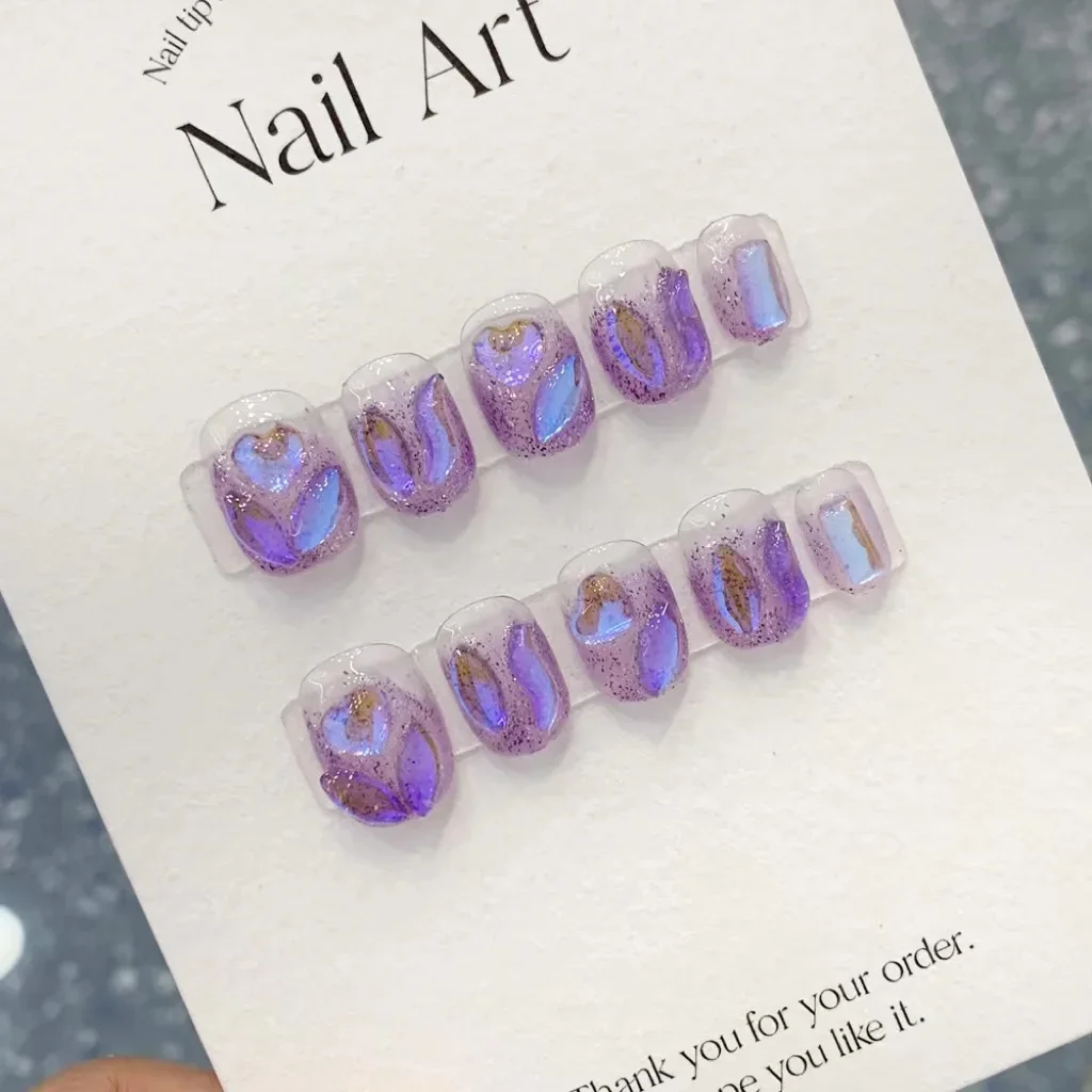 Pure Hand-Made Manicure, it is made exactly like a genuine nail, One pair is 10 Pieces Each Pair of Nails is Handmade in 7 Steps: 1 of Nails 2 three Coat 4 Nail Gel 5 Gel 6 Gel 7 Coat Package List: 1*jelly gel decal sheet+1*mini nail file+1* wooden stick+1* cleaning paper Notes:Do no longer touch the water for 2 hours after carrying to keep the jelly gel sticky Generally choose XS size for small nails, Most of Fairies want S size, Finger slightly larger or nail mattress flat fairies choose M size L size for large nails If you want a typical point, please measure it according to the tactic we offer Size shouldn't be small, for example: the size is 12 then favor 13mm How to use the jelly gel sticker 1 polish with a nail file to remove grease 2 the nails with alcohol pads three of suitable jelly gel four of appropriate nails five numbers outward, root fit downward press for 10 seconds until agency 6 edge Remove the Nails 1 a small follow gently pry the crevice at the facet of the nail 2 pry a number of instances till the nail piece comes off 3 forced removal directly, could be extra damage to the nail floor It is suggested to soak the jelly in hot water for a while before removing after which eliminate it If the viscosity is strong, follow some cleaning soap alongside the edge after which tilt it up with a stick
