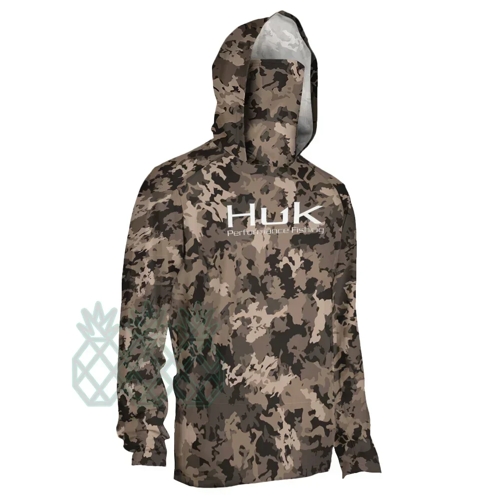 HUK Fishing Clothing Camouflage Men's Long Sleeve Mask Hooded Fishing Shirts Upf 50+ Uv Protection Performance Fishing Apparel