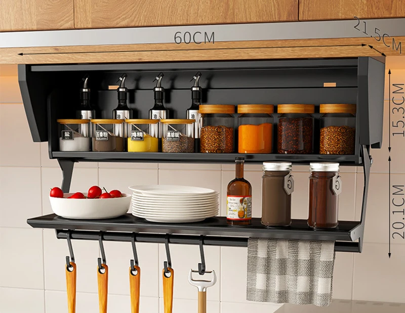Kitchen Pull-down Folding Condiment Storage Shelf Space Aluminum Wall Hanging Condiment Rack Under The Cabinet Large-capacity