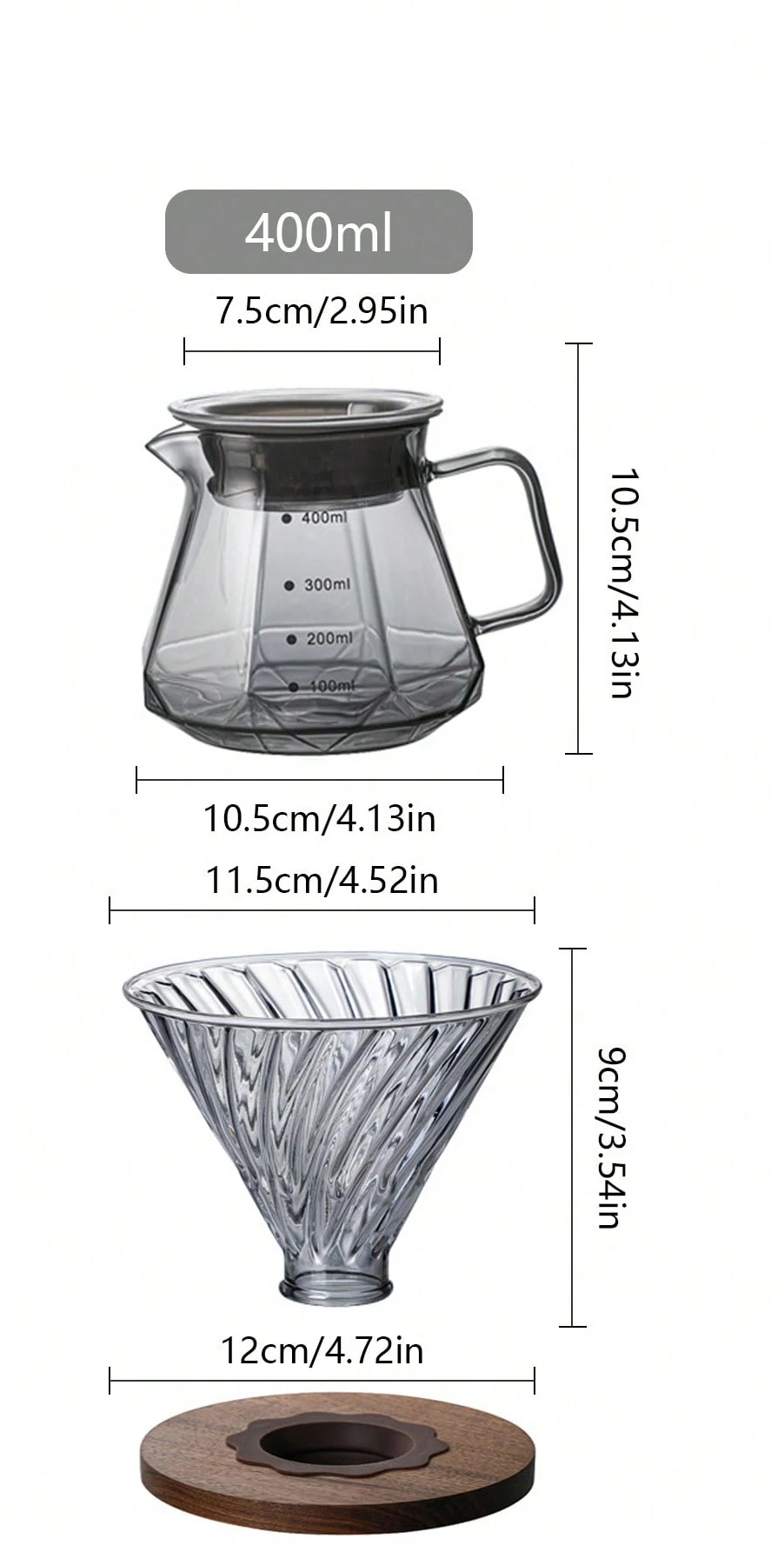 Leeseph Pour Over Coffee Maker with Dripper High Borosilicate Glass Coffee Pot Hand Drip Sharing Pot Filter Funnel Portable