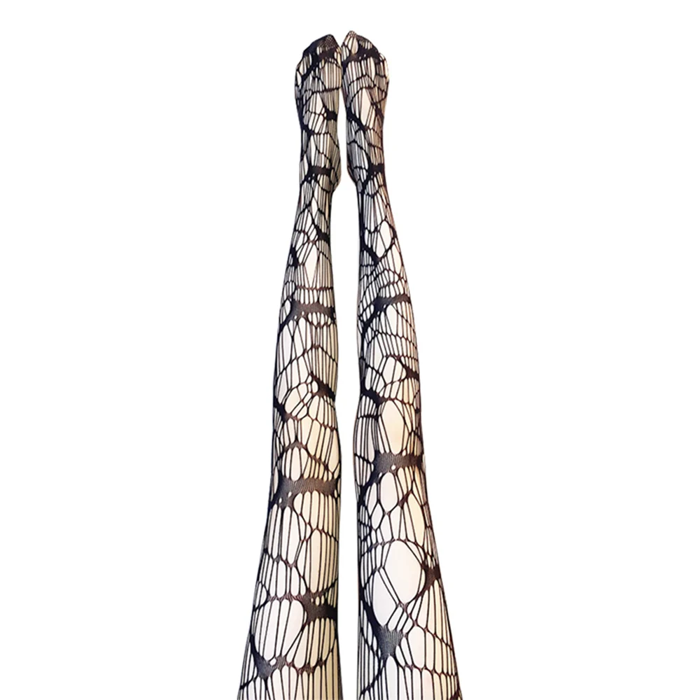 Lolita Gothic Girls Hollow Out Stockings Women Big Spider Fishnet Halloween Witch Black Tights Garter Over Knee Socks Pantyhose
