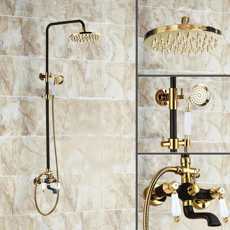 Luxury Gold Color Brass Black Oil Rubbed Bronze Bathroom Round Rain Shower Head Mixer Tap Set Wall Mounted Bathtub Faucet ars926