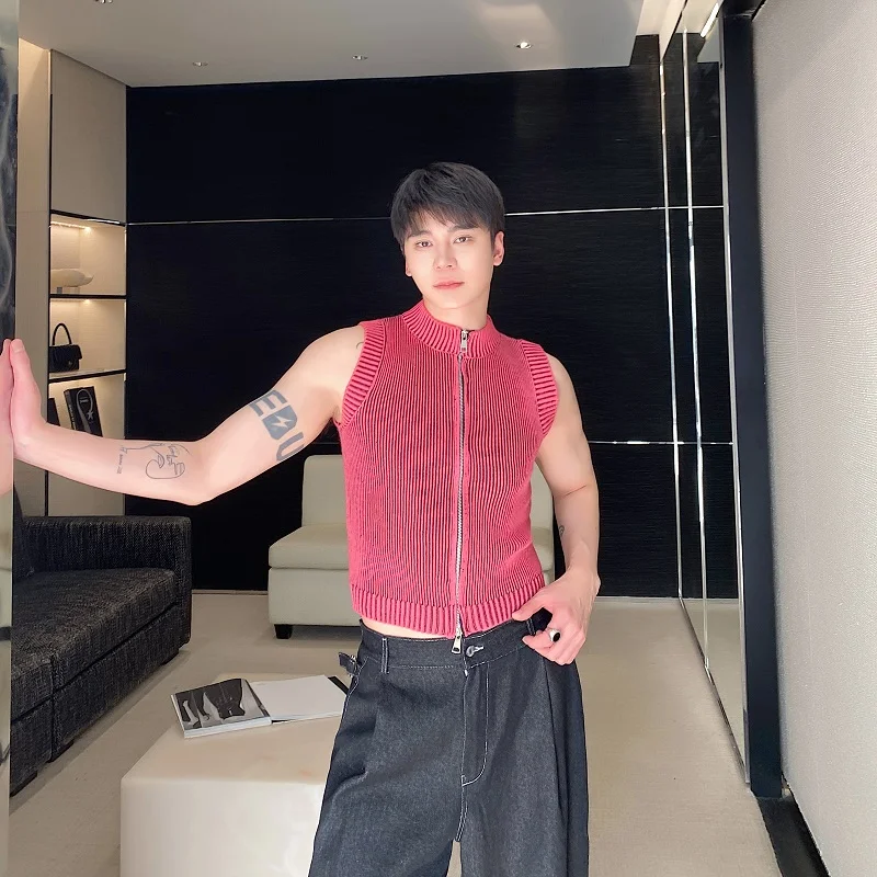 LUZHEN 2024 Summer New Fashion Knitted Elastic Tank Tops Men's Street Slim Solid Color Original Trendy Sleeveless Vest LZ1456