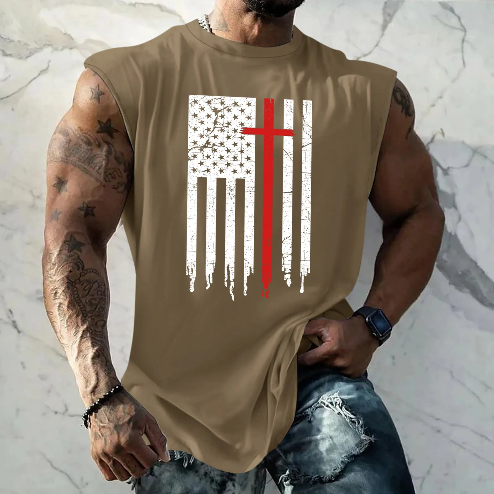 Men Independence Day Tank Top Flag Print Vest Male Fashion Summer Streetwear Sleeveless Sport Shirt V-neck Casual Clothes S-3xl