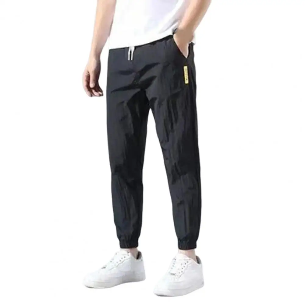 Men Trousers Non-pilling Mid-waisted Polyester Summer Lace-up Pockets Men Sweatpants Drawstring Pants Daily Wear