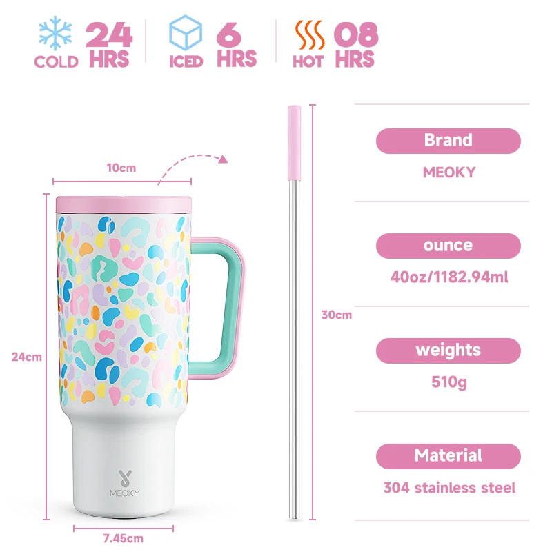 Meoky 40oz Cup Large Capacity Water Bottle Various Styles Pink White Vacuum Cup Stainless Steel Juice Milk Tea Car Mugs Gifts