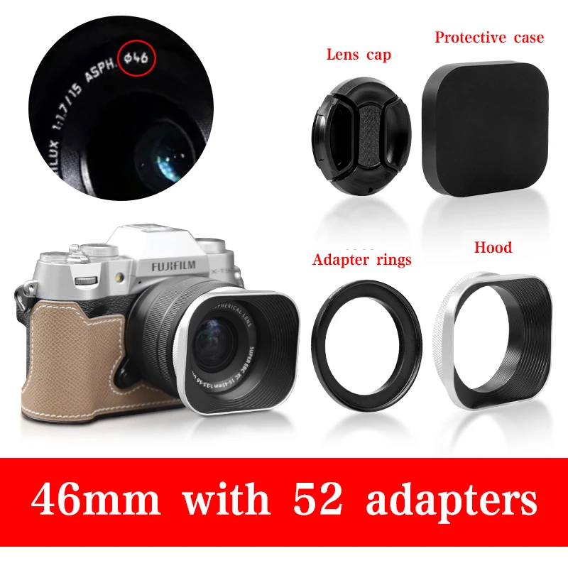 Metal square cover suitable for Fuji X100V/X100VI/X100F/X100S camera lens hood can be equipped with UV37mm-52mmfilter