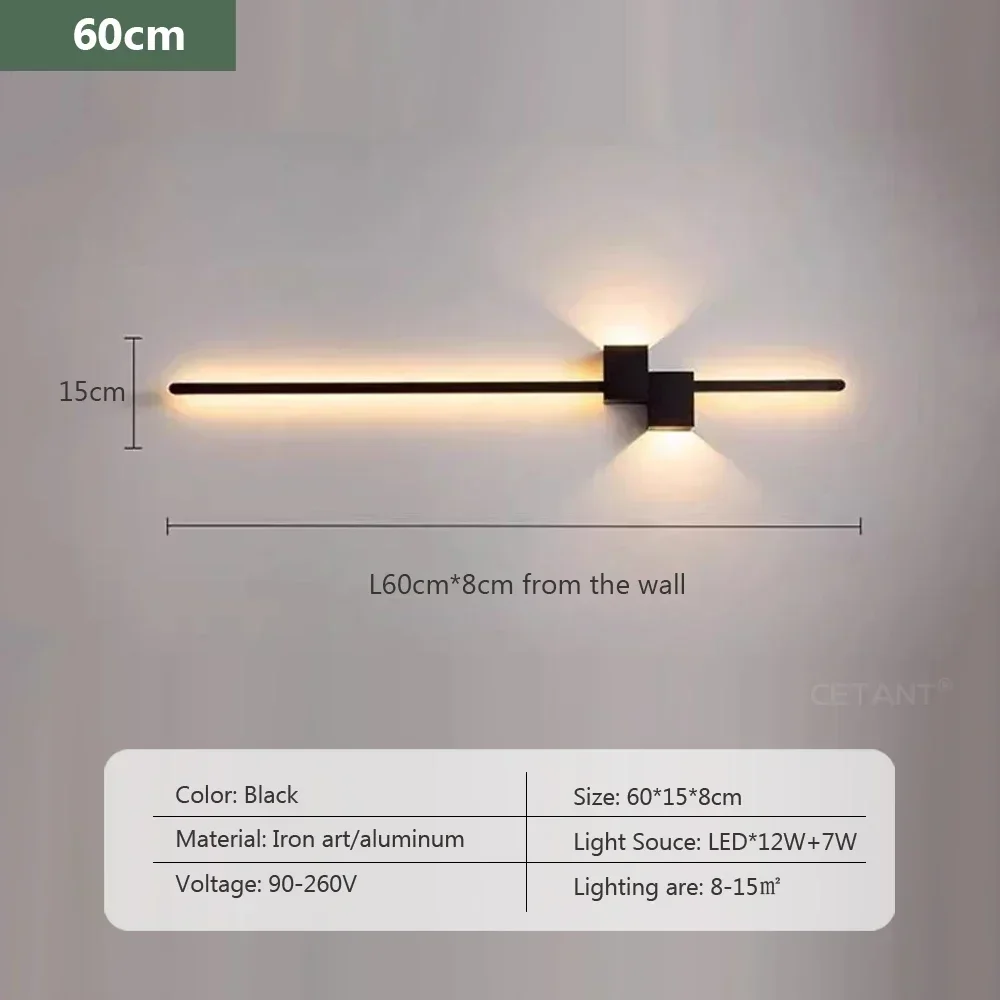 Modern LED Wall Lamp Minimalist Black 60-100cm Up Down Luminous Light For Bedroom Bedside Living Room Hallway Indoor Wall Sconce
