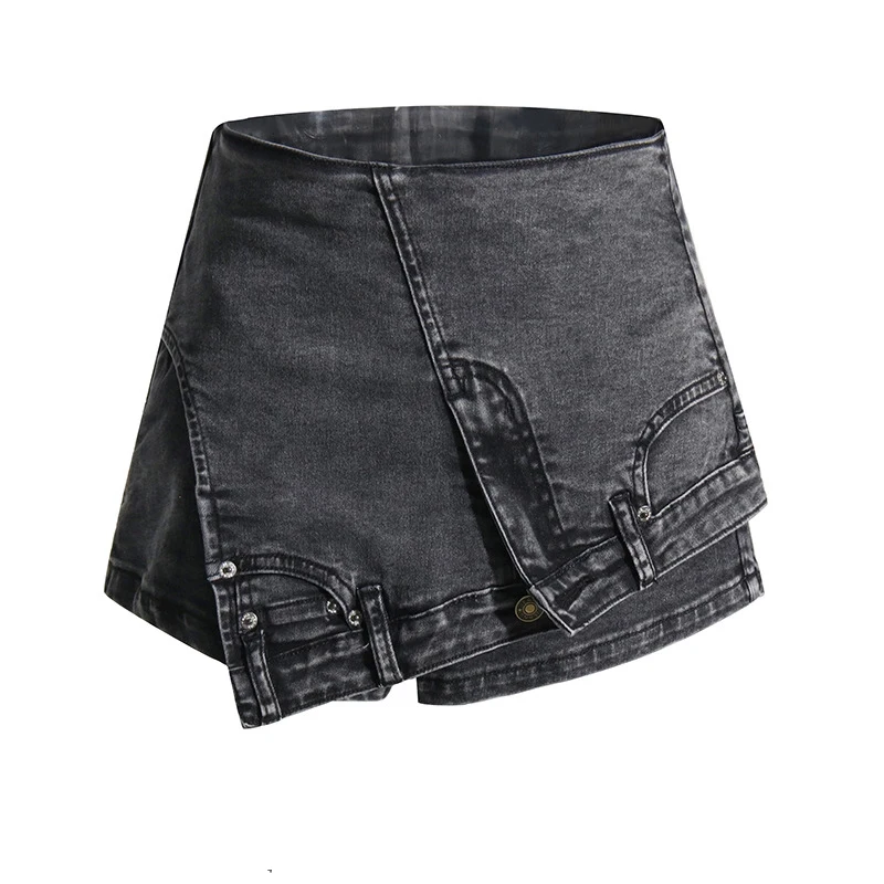 Newest Fashion Runway 2023 Designer Women's Street Trend Spliced Jeans Irregular Pockets Washable Vintage Denim Shorts Skirts