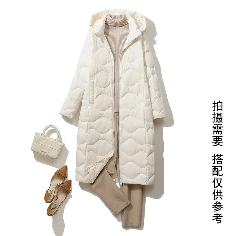 NewLightweight Down Jacket Women Over Knee Enlarge Hooded Cultivate Oneself Show Off Weight Keep Warm White Duck Down Jacket