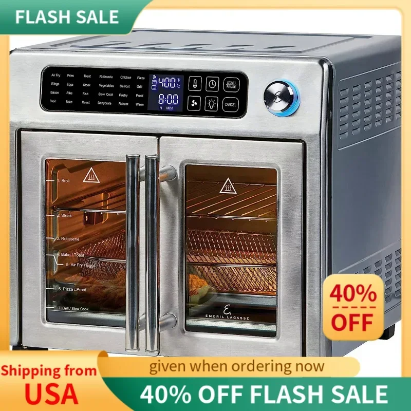 QWEmeril Lagasse (4-00675-02) 26 QT Extra Large Air Fryer with Grill Plate,Convection Toaster Oven with French Doors,Stainless S