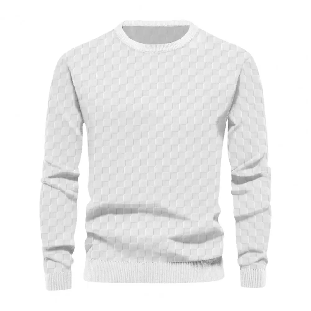Round Neck Long Sleeve Top Checkered Pattern Men's T-shirt Stylish Loose Fit with Elastic Cuffs Soft Pullover for Fall Spring