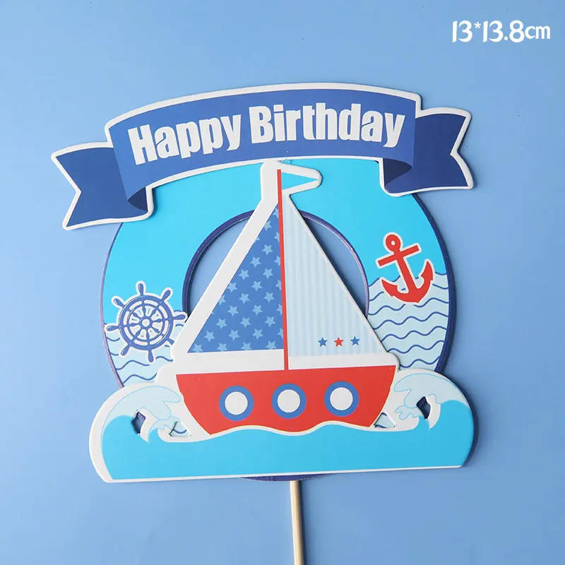 Sailing goggles boy summer Decoration Happy Birthday ship anchor Cake Toppers for Children Kid Boy Party Supplies Lovely Gifts