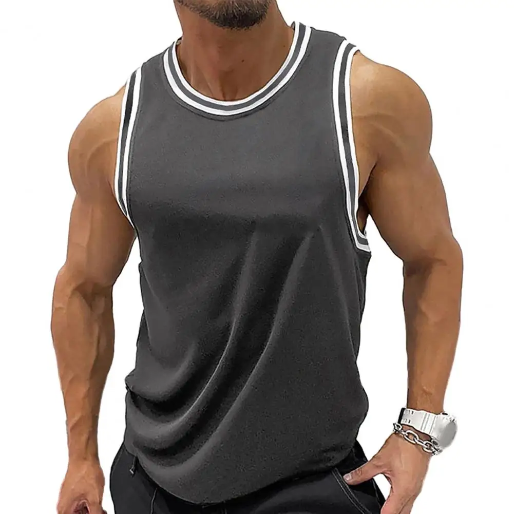 Simple Men Fitness Vest Quick-drying Men Vest Men's Slim Fit Contrast Color Sleeveless Sport Fitness Vest Quick Drying for Gym