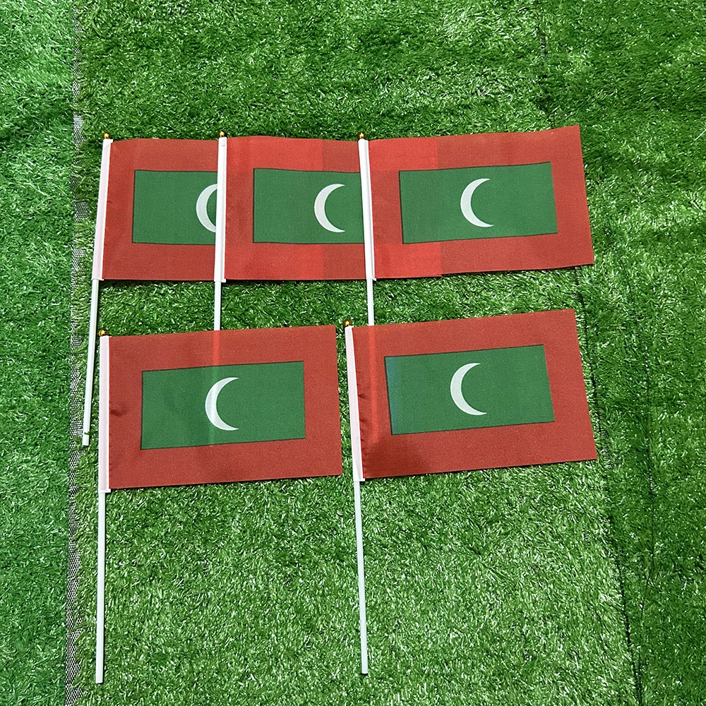 SKY FLAG Maldives hand Flag 10/20/50/100pcs 21*14cm Maldives Hand Waving Flags With plastic pole For Sports Activity Home Decor