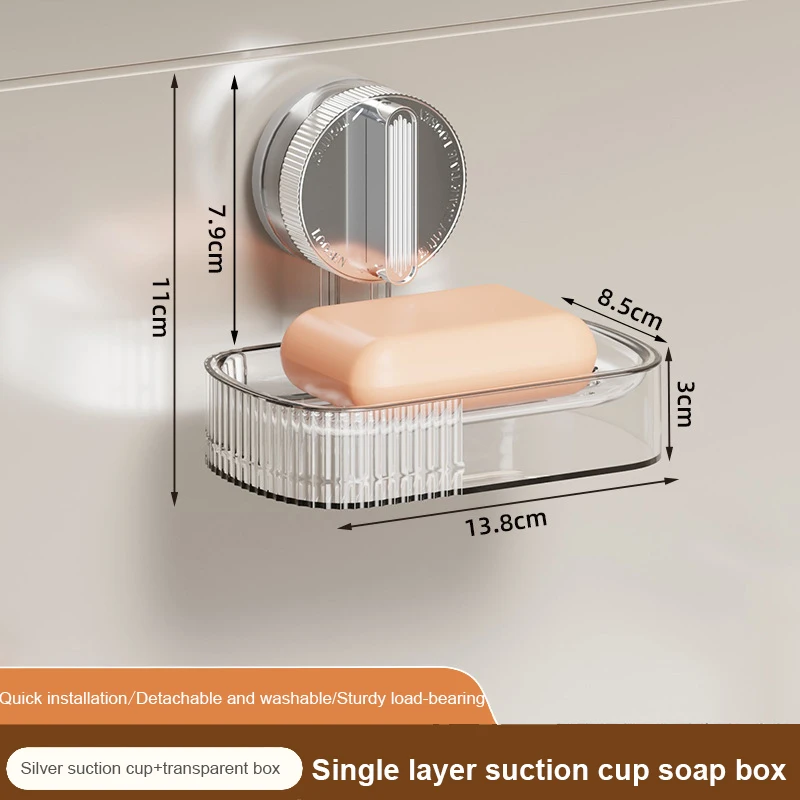 Soap Dish Holder for Shower Suction Cup Wall Mounted NO-Drilling Removable Bar Soap Sponge Holder for Bathroom Bathtub Kitchen