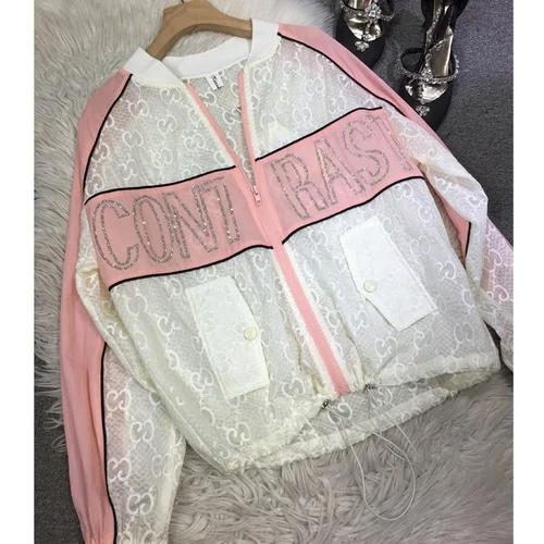 Spring Summer Letter Rhinestone Long Sleeve Sun-Protection Overshirt Zipper Coat Lightweight Top + Shorts Two-Piece Set Women