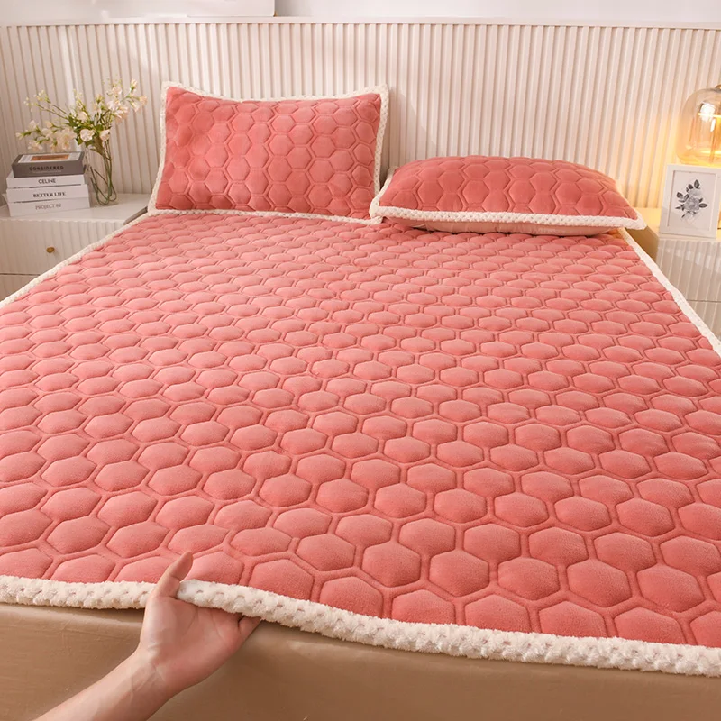 Thick Fleece Mattress Pad Warm Coral Fleece Bed Blanket Pads for Winter Solid Color Mattress Protector Cover for Double Beds