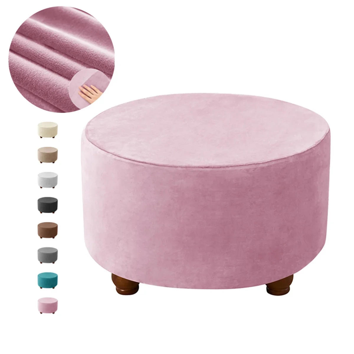 Velvet Round Ottoman Stool Cover Elastic Sofa Footrest Cover Washable All-inclusive Footstool Seat Slipcover Furniture Protector