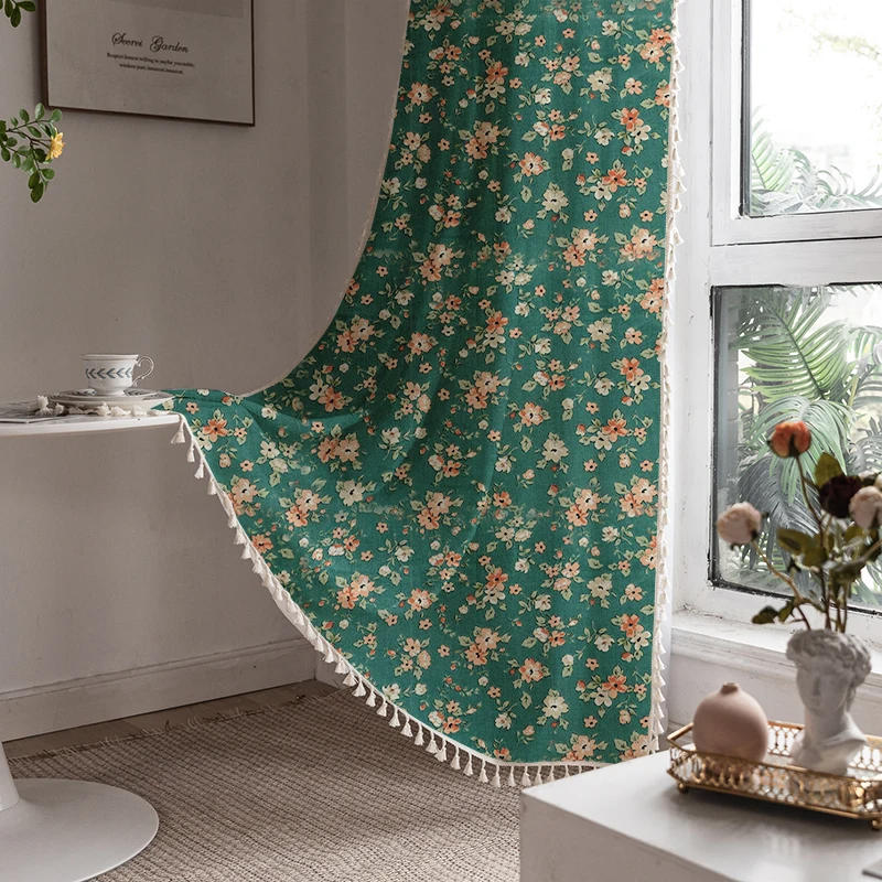 Vintage Semi-Blackout Windows Curtains For Bedroom Drapes Living Room Country Floral Tassel Length Farmhouse Decoration Curtain