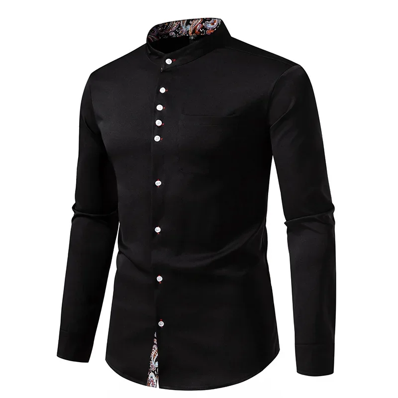 White Paisley Costrast Tuxedo Shirt Men 2024 Brand Slim Fit Long Sleeve Henley Dress Shirts Formal Business Pocket Shirt Male