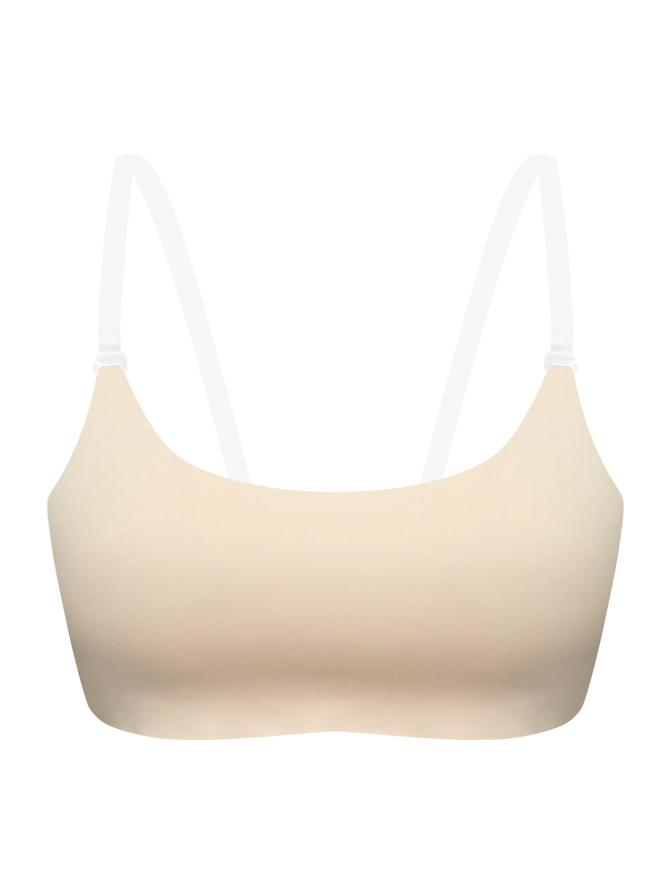 Women's Comfortable Solid Black/Beige Colors Backless Transparent Shoulder Strap Bra
