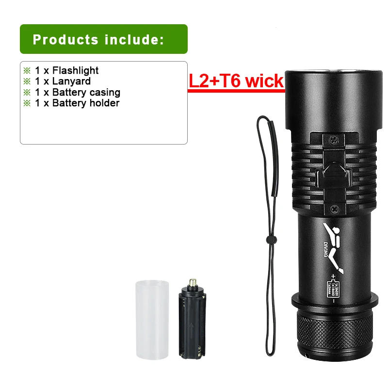 Product Description: Brand : PAWEINUO Light Wick : XHP a hundred and sixty Main materials : Aviation Aluminum Alloy Battery : 2*18650/26650 Battery Switch : Electromagnetic Sliding Lighting Time : 6-18 HoursDiving Depth: 500 m Size : 217*35*60 mm Waterproof grade : IPX-8 Lighting Color : White Light Function : Diving/Fishing/Hunting/Emergency/Rescue etc. The Reason For Choice: ✧ High-power XHP a hundred and sixty wick, great powerful flashlight, continual service lifestyles can reach 100,000 hours. ✧ IPX-8 water resistant official diving flashlight, with stronger underwater penetration, can dive 500m underwater, secure free diving. ✧ Adopt aviation-grade aluminum alloy and CNC steel casing manufacturing process, excessive strength, gentle weight; no longer afraid of falling, not petrified of pressure, durable. ✧ The switch adopts a magnetic design, permanently isolated from the outside, which permanently solves the difficulty of water stepping into the buttons of the old style diving flashlight. Product Description:Brand : PAWEINUO Light Wick : L2+T6 Main materials : Aviation Aluminum Alloy Battery : 1*18650/26650 Battery Switch : Magnet Switch Size : 130*35*45mm Waterproof grade : IPX8 Lighting Color : White Light / Yellow Light Function : Diving/Fishing/Hunting/Emergency/Rescue etc.