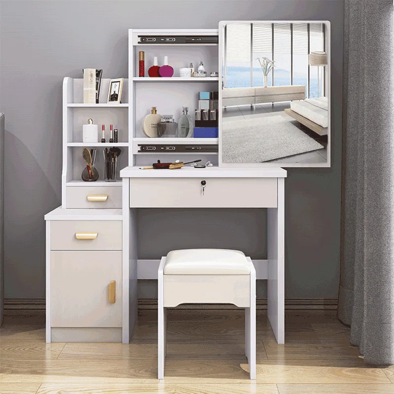 White Makeup Vanity Table with Stool and Mirrors Dressing Tables with 4 Drawers Makeup Bedroom Cabinets Storage Toiletries Table